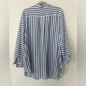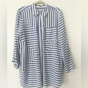 Blue & white striped long line tunic top with pockets. In VGUC.