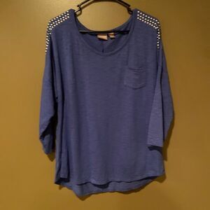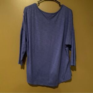 Chico’s Studded Shoulder Corinth Blue 3/4 Length Sleeves Large