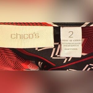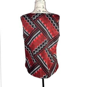 Make a bold statement with this sleeveless Chico’s blouse featuring a striking black and red pattern. The lightweight fabric and flattering fit make it perfect for day-to-night style—dress it up or down with ease!