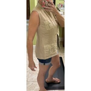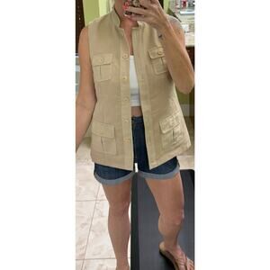 Chicos Suede Vest Size S 0 Tan Beige Pockets Lined Button Front Safari Outdoor