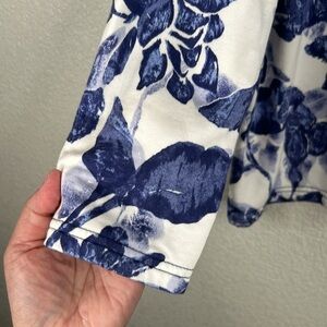 Chico's Super Soft Cowl Neck Long Sleeve Blue & White Floral Top