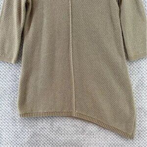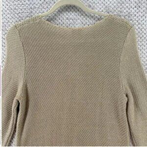 Chico's Sweater 1 M/8 Khaki Metallic Slanted Hem Heidi Pullover 3/4 Sleeves New