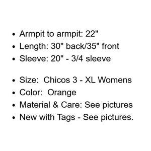 Chicos Sweater 3 Womens XL Orange Cardigan Open Front Shark Hem Textured New