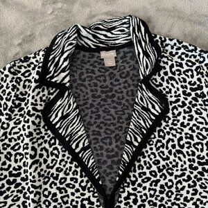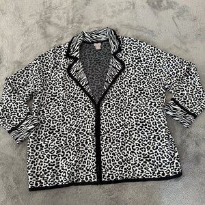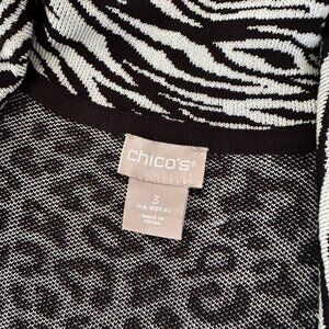 Chico's Sweater Cardigan 3 XL 16/18 Animal Print Zebra Cheetah Black White