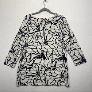 Chico's Sweater Floral Stripe 2/M Cotton Blend