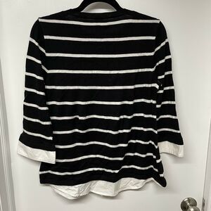 Chico's Sweater Knit Pullover Size 1 US 8/Medium Striped Navy White Layered Look