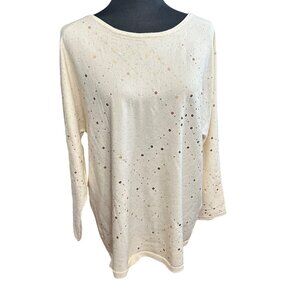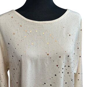 Chico's Sweater Size 3 XL Cream Gold Scattered Sequins Knit Women Holiday