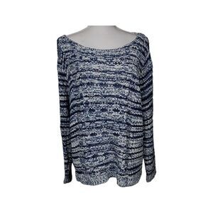 Chico's Sweater Size Extra Large Blue Open Knit Boat Neck Lagenlook Flowy