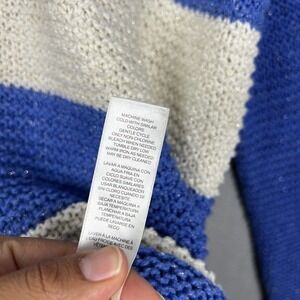 Chico's Sweater Top Size 3/XL Blue Striped Metallic Gold Open Knit Pullover