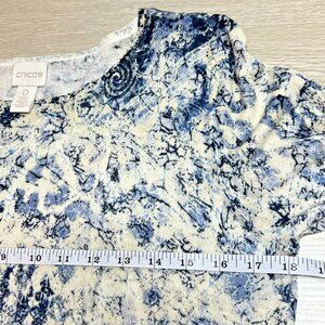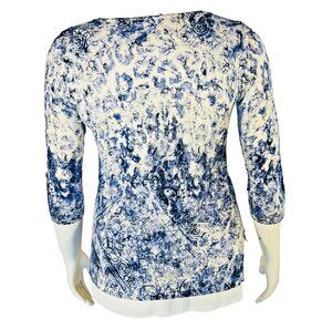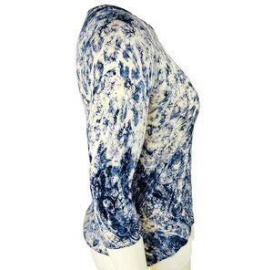 Chico's Sweater Tunic Womens S Blue Cream Abstract Roccoco Animal Print 3/4 Slve