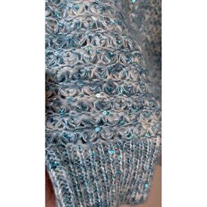 Chicos Sweater Women L Blue Cowl Neck Pullover Knit Sequin Tunic Festive Neutral