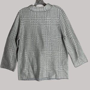 **Chico's Women's Gray Metallic Plaid Sweater – Size Medium**