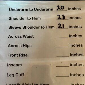- Measurements: 20" bust, 28" length, 21" sleeve