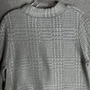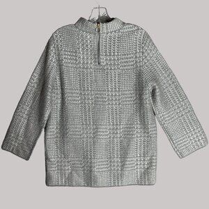 Chicos Sweater Women Medium Gray Zip Back Metallic Plaid Pullover Cozy Academia