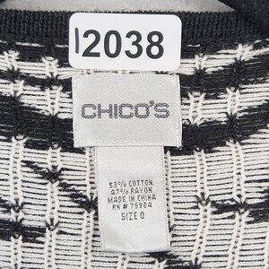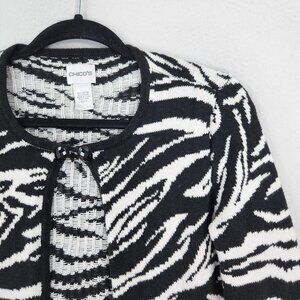 Chicos Sweater Womens 0 Black White 4 Zebra Print Cardigan Knit Casual Classic