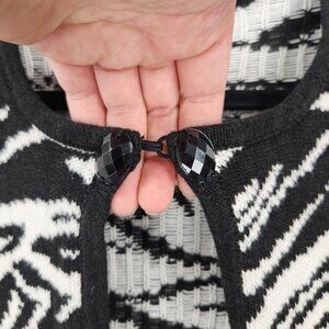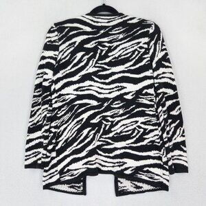 Chico's Women's Size 4 {Size 0 in Chico's sizing} Black White Zebra Print Cardigan Sweater. In good pre-owned condition. Spot on the cuff. Please see photos.