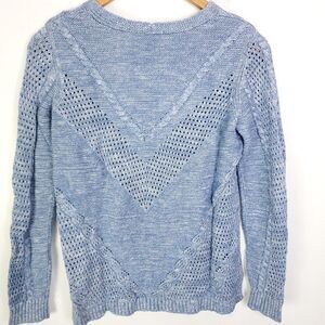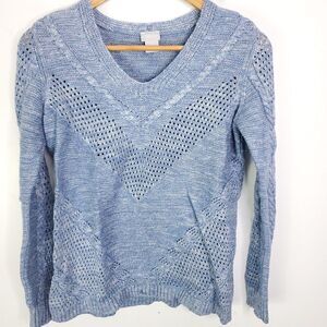 Chicos Sweater Womens 0 Size Small Pointelle Blue V Neck Knit Mid Weight