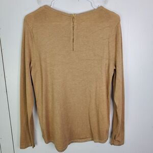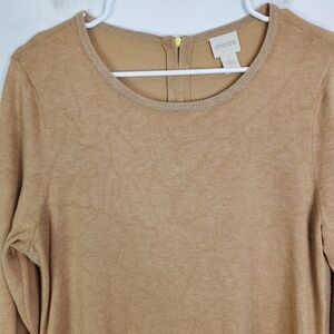 Elevate your wardrobe with this Chico's sweater that exudes elegance and style. The neutral brown color, solid pattern, and classic theme make it a versatile piece for both casual and workwear occasions. The sweater features a round neck, long sleeves, and a zipper back for added comfort and style. Crafted from a blend of polyester and rayon, this sweater is lightweight and machine washable for easy care. The regular fit and size type ensure a comfortable wear for women of all sizes. Ideal for the fall, winter, and spring seasons, this pullover is a must-have addition to any fashion-forward wardrobe.