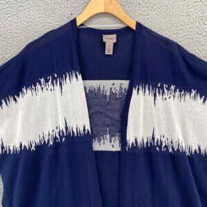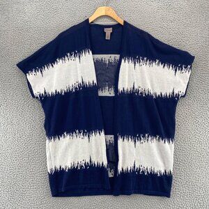 Chicos Sweater Womens 1 US Medium Easywear Navy Striped Cardigan Short Sleeves