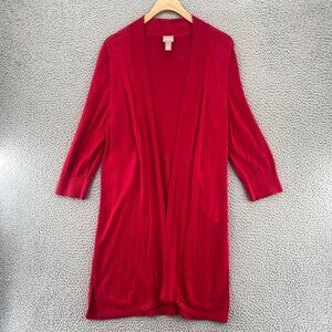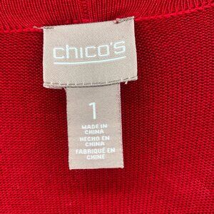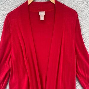 Chicos Sweater Womens 1 US Medium Red Cardigan Open Front 3/4 Sleeves Everyday