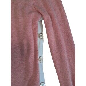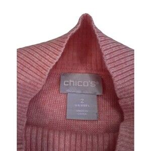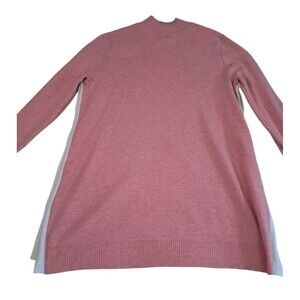 Tags: chicos, women, size 2, large, pink, white, mock neck, cashmere blend, soft, tunic, side buttons, long sleeve, sweater