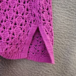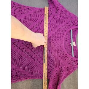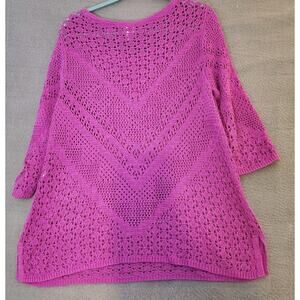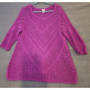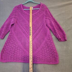 Chicos Sweater Womens 2 Large Purple 3/4 Sleeve Open Knit Tunic Crochet 100% Cotton. Excellent used condition no stains or holes. Smoke-free home. Check out my other items I will combine shipping. The material and care tag were previously removed.