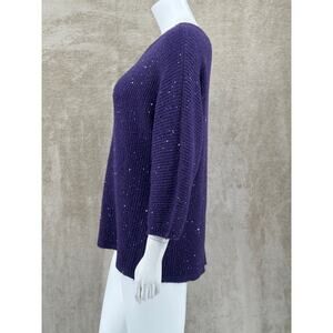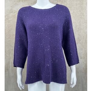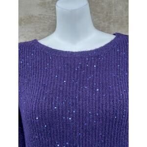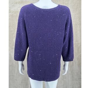 Chicos Sweater Womens 2 Large Purple Sequin Knit Fairy Festive Sparkle Holiday