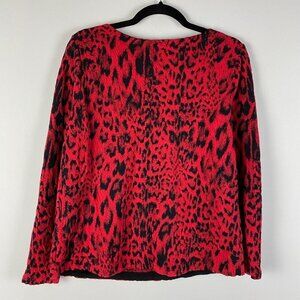Chicos Sweater Womens 2 US Large Pullover Animal Print Red Black Long Sleeve