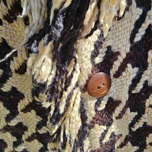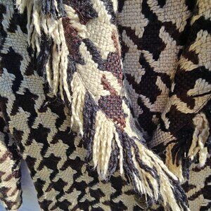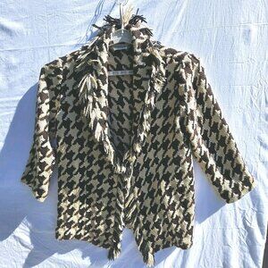 Chicos Sweater Womens 2 US Medium Black Houndstooth Chunky Knit Fringe Cardigan