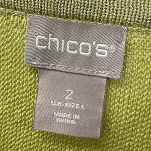 Chico’s Sweater Womens Large Knit Metallic Green Linen Blend Short Sleeve NEW