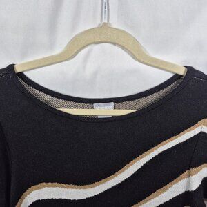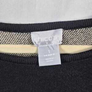 Chicos Sweater Womens M Black Brown Knit Pullover Tunic Length 3/4 Sleeve Top