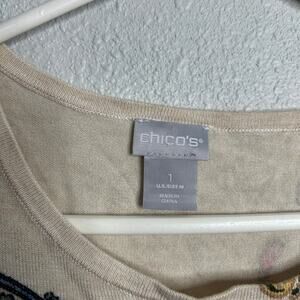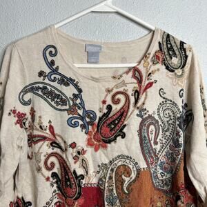 Chicos Sweater Womens Medium Cream Multicolor Paisley Pullover Long Sleeve Knit