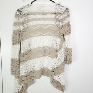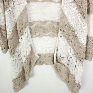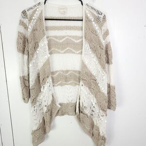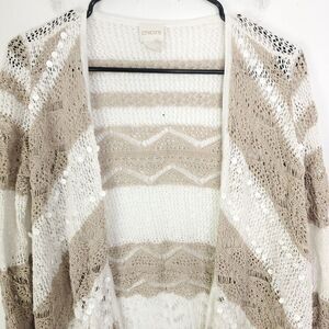 Chicos Sweater Womens S 0 Loose Open Knit Neutrals Stripes Sequins Beachy Light