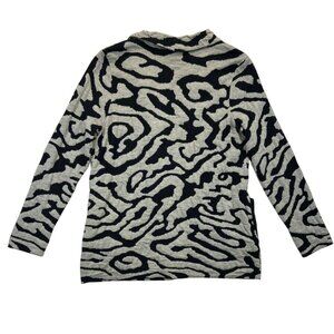 Chico's Sweater Womens Size 1 Black Gray Boiled Wool-Blend Patterned Cardigan