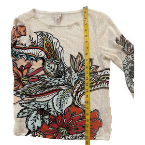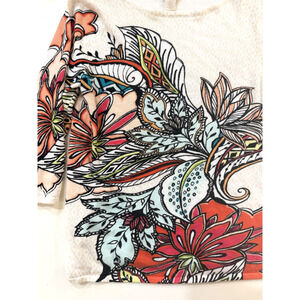 Chico's Sweater Womens Small 0 White Multicolor Floral Paisley Pullover Crewneck