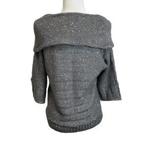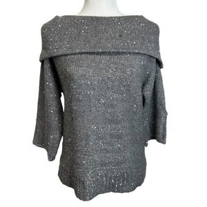 Chico’s Sweater Women’s sz. 0 (SMALL) Gray Sequined Cowl Neck 1/2 Sleeve
