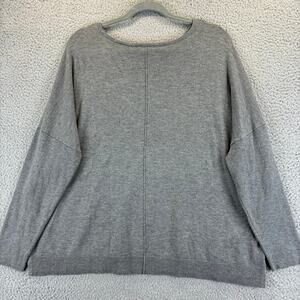 Chicos Sweater XL Gray Cashmere Blend Front Seam Roomy Boxy Casual Comfort LS