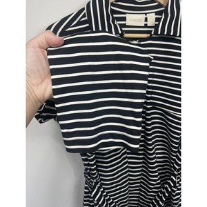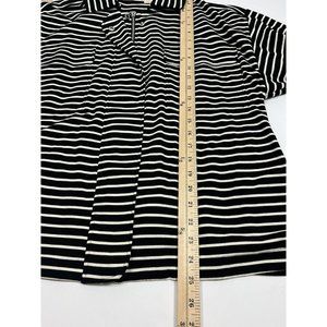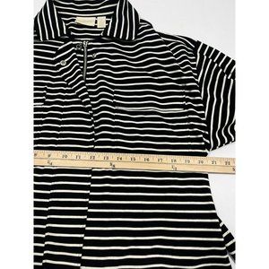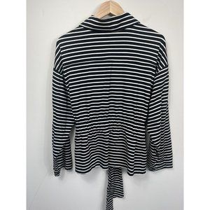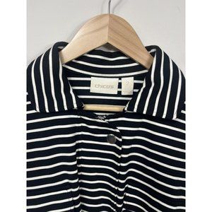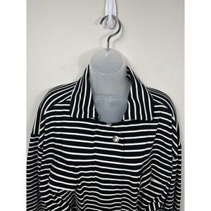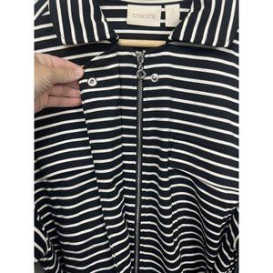 Chicos Sweatshirt Jacket Womens Size 2 Black White Stripe Zip Up Belt Collar L