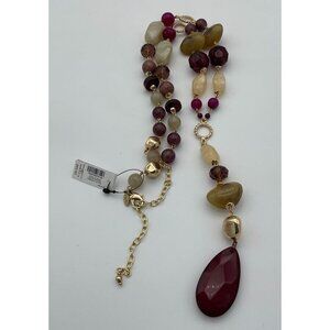 Chicos Syrah Warm Tone Multi Colored Beaded Gold Tone Y-Necklace NWT