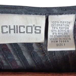 Chico's Sz 1 M Vtg Multicolor Ribbon Sheer Zip Jacket Boho Artwear Swirl Texture
