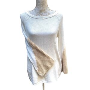 Chico’s Sz 1 M White Gold Sparkle Sweater Beachy Bell Sleeve Bateau Stitch Knit