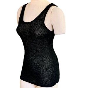 Chico's Sz 1 (M/8) Black Textured Knit Sleeveless Tank Top #1A