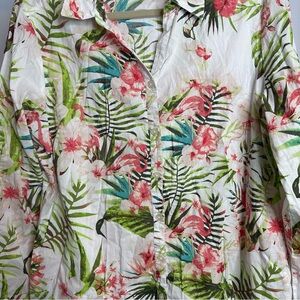 Chicos Sz 1 MEDIUM 6/8 Tropical Beach Flamingo Blouse Shirt Top Summer Cute