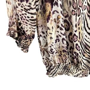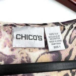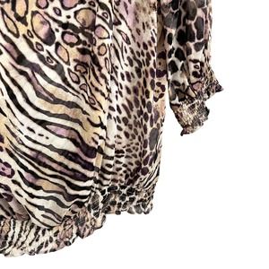 Chicos Sz 1 Medium 100% SILK Sheer Animal Print Blouse Shirt Top 3/4 Sleeve