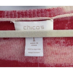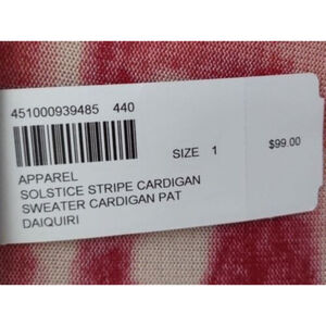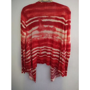Chico’s Sz 1 Open Front Cardigan Sweater Solstice Stripe Daiquiri Red $99 New. Thanks for looking.