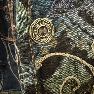 Chicos Sz 1 (US 8) Art to Wear Jean Jacket Embroidered Sequins Beads Mandarin