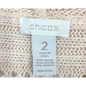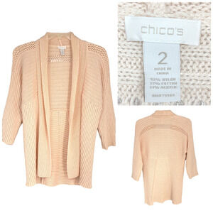 Chico's Sz 2 L Peachy Pink Open Front Chunky Ribbed Knit Cardigan Sweater
