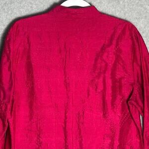 Chicos Sz 2 Medium 100% Silk Dark Pink Embroidered Jacket Mandarin Collar India