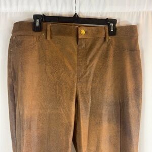 Chicos Sz 2 Regular ( US 12) Medium Md Brown Vegan Faux Suede Stretchy Slim Leg