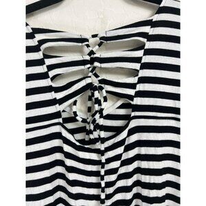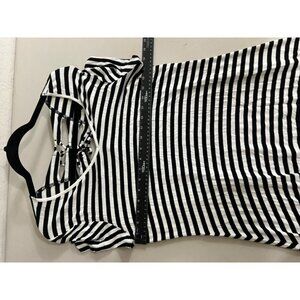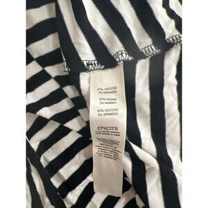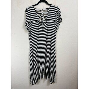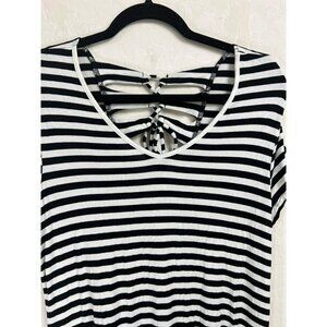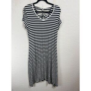 Chicos Sz 2 (US 12) V Neck T-Shirt Midi Dress in black and white horizontal stripe design with a fun back tie detail. Comfortable, chic, and versatile.